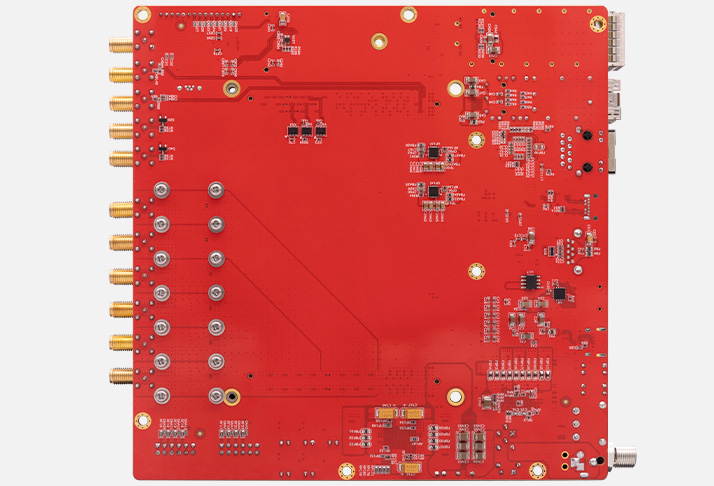 The AXRF67 development board is built around the AMD Xilinx Zynq UltraScale+ RFSoC ZU67DR. It provides 4 physical RF-ADC interfaces (2.95GSPS) and 2 physical RF-DAC interfaces (10GSPS), leveraging the chip's full 8-channel capability while offering optimized connectivity for target applications. It supports direct RF sampling below 7.125GHz, delivering a comprehensive solution for 5G communication, radar systems, and wired access testing from teaching labs to research verification.